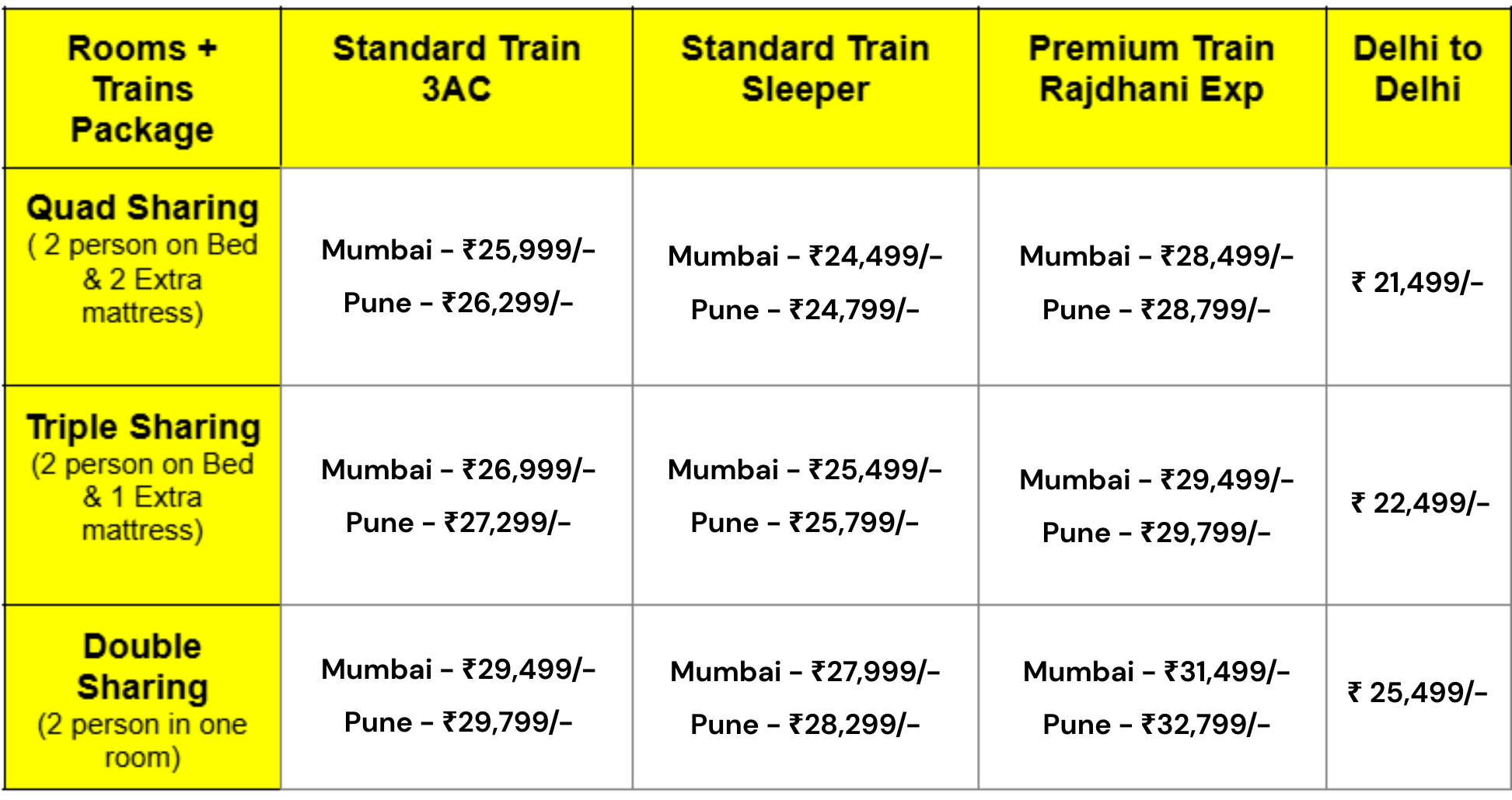 - Begin your sacred journey with a flight or train from Mumbai/Pune to Delhi.